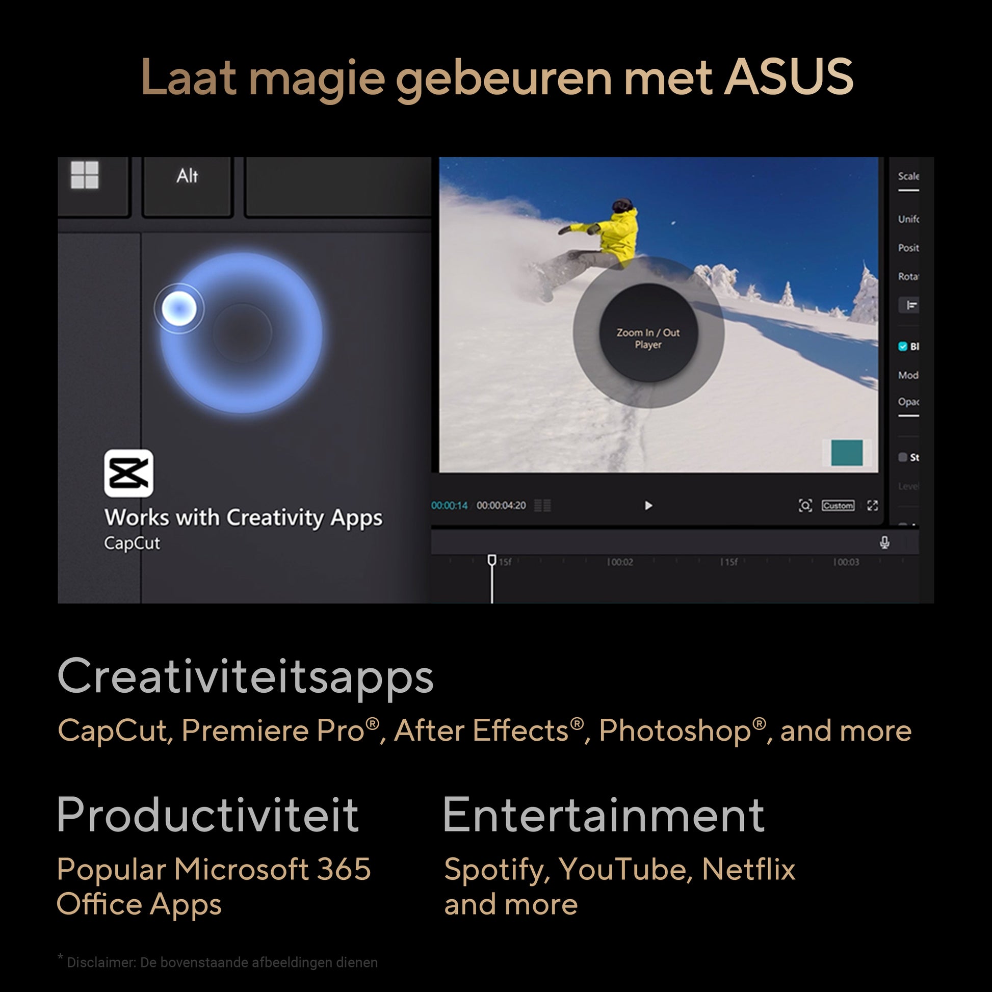 Maak kennis met de ProArt P16 - uw ultieme creatieve metgezel voor in de studio en onderweg. Het OLED-touchscreen garandeert nauwkeurige kleurechtheid voor foutloze proofing, terwijl veelzijdige I/O-poorten al uw randapparaten probleemloos aansluiten. Deze NVIDIA® Studio-gevalideerde laptop is uitgerust met een GeForce RTX™ 50-serie Laptop GPU, die krachtige graphics en 321 TOPS AI-prestaties levert. Daarnaast is hij uitgerust met tot een 50 TOPS AMD Ryzen™ AI 9 HX 370 processor, die uitzonderlijke verwerkingskracht levert. Met AI-verbeterde creatieve functies, robuustheid op militair niveau en een lang meegaande accu, verandert de ProArt P16 elke omgeving in uw studio.