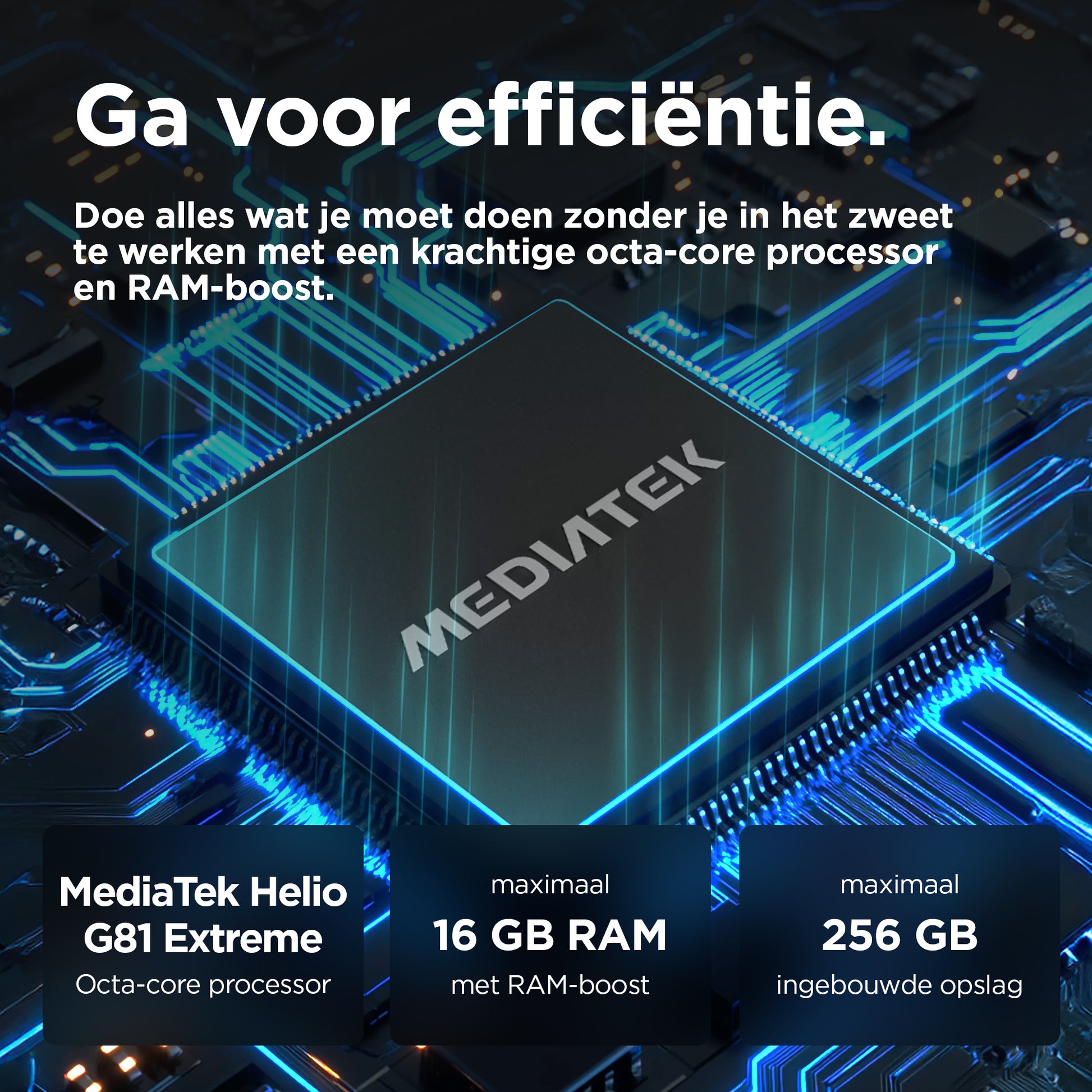 Ervaar adembenemend beeld en geluid met de nieuwe moto g05. Kijk je favoriete series en films op een superhelder display van 6,67 inch zelfs buiten in het zonlicht. En luister naar geluid overal om je heen dankzij krachtige stereoluidsprekers met Basversterking. Maak prachtig scherpe foto's, dag en nacht, met het Quad Pixel-camerasysteem van 50 MP(2) met AI-powered portret. Verhoog je snelheid met superefficiënte prestaties en maximaal 12 GB RAM beschikbaar met RAM-boost(5). Met een afwerking van vegan leer, een waterafstotend design(4) en Corning® Gorilla® Glass 3 gaat de stijlvolle moto g05 lang mee. Vertrouw op een accu van 5200 mAh met een lange accuduur + TurboPower™ opladen. En krijg heel veel opslag voor je content en creaties. De moto g05 is in elk opzicht geweldig.