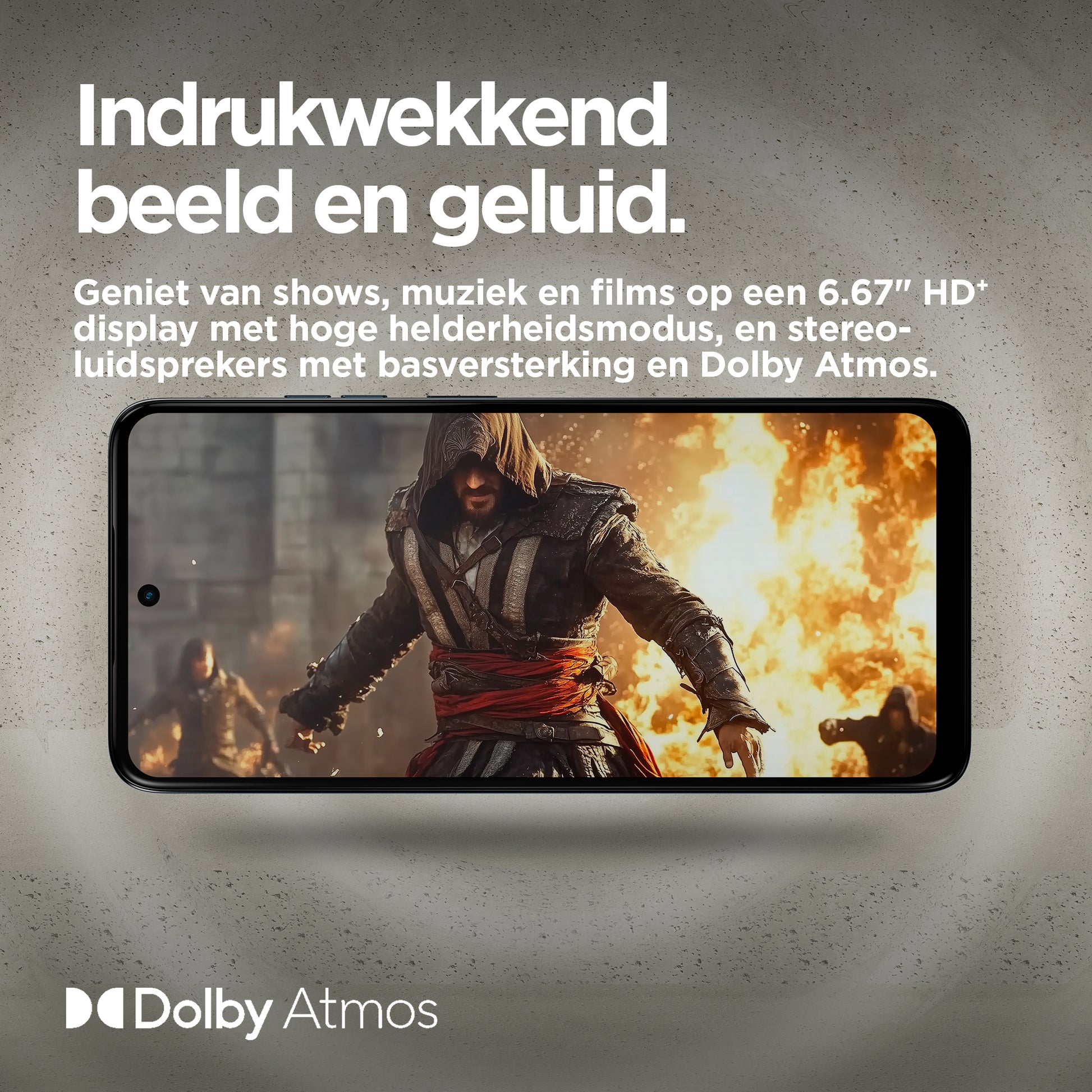 Geniet van helder entertainment met de nieuwe moto e15. Kijk je favoriete series en films op een superhelder 6,67-inch display van 90 Hz(8), zelfs buiten in het zonlicht. En luister naar geluid overal om je heen dankzij krachtige stereoluidsprekers met Basversterking. Maak dag en nacht prachtig scherpe foto's met de Quad Pixel-camera van 32 MP(2) met AI. Trap het gaspedaal in met meer snelheid en efficiëntie en maximaal 6 GB(5) beschikbaar RAM met RAM-boost(4). Met een afwerking van vegan leer, een waterafstotend design(3) en Corning® Gorilla® Glass 3 gaat de stijlvolle moto e15 lang mee. En ga langer door met wat je leuk vindt dankzij een accu van 5200 mAh die lang meegaat en TurboPower™ opladen. Maak elke dag helder met de moto e15.