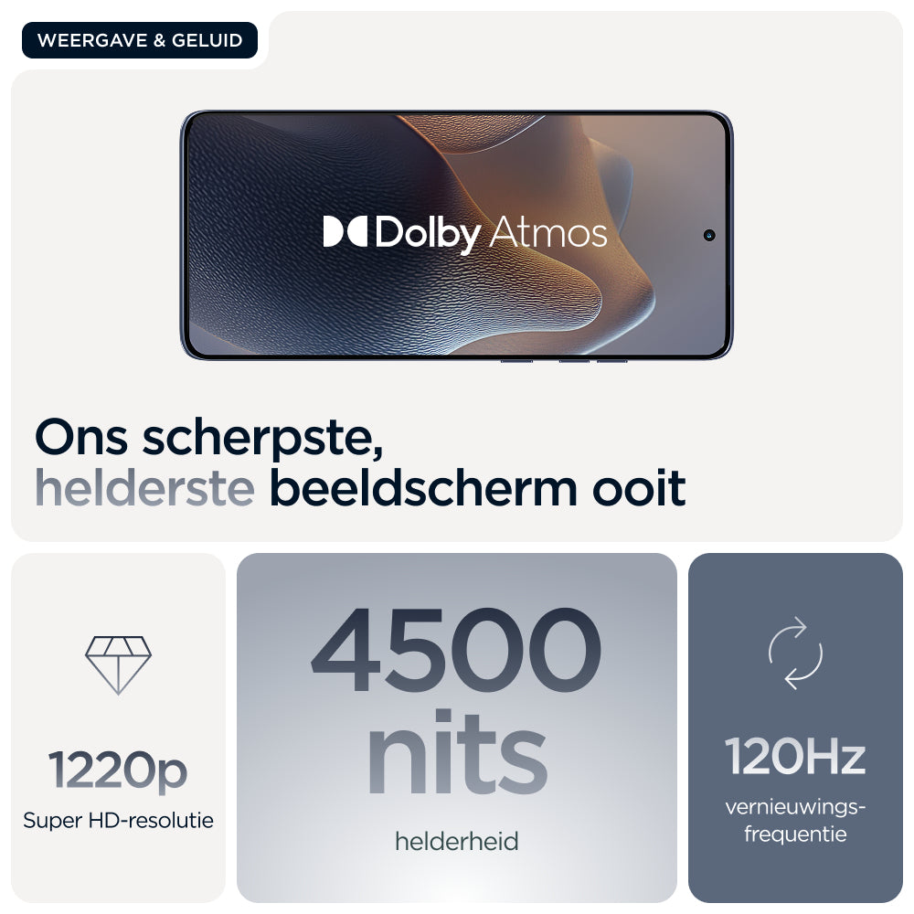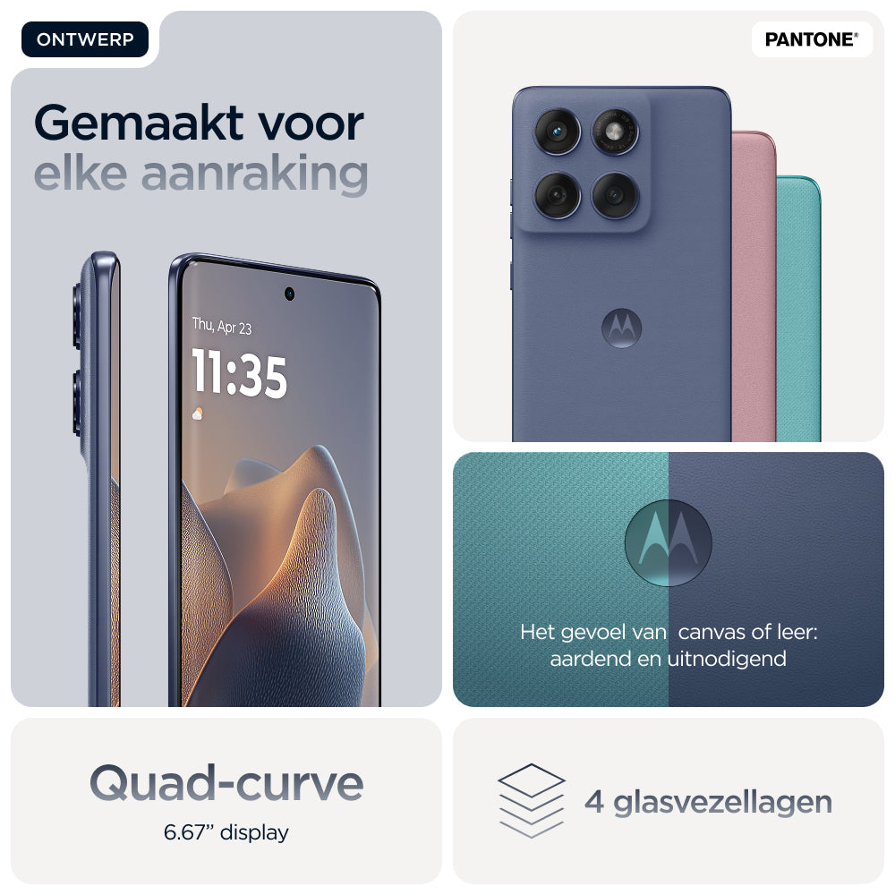 We hebben de smartphone-essentials die je nodig hebt, gecombineerd met de premiumkwaliteit die je wilt. Ontdek de motorola edge 60 fusion. Met zijn nauwkeurig vervaardigde ontwerp met vier gebogen randen, valt hij vanuit elke hoek op. Maak overal uitzonderlijke foto's met het Sony LYTIA™-camerasysteem met 50 MP. Houd je smartphone beschermd tegen druppels(1, 2), extreme temperaturen(2) en water(3), terwijl je geniet van een elegant en verfijnd design. En geniet van een 6,67" Super HD-display (1220p) – ons helderste scherm ooit. Plus, laad de accu op in slechts 8 minuten met TurboPower™-opladen van 68 W.(4) En ga je dromen achterna zonder haperingen dankzij de supersnelle prestaties. Til de essentials naar een hoger niveau met motorola edge 60 fusion.