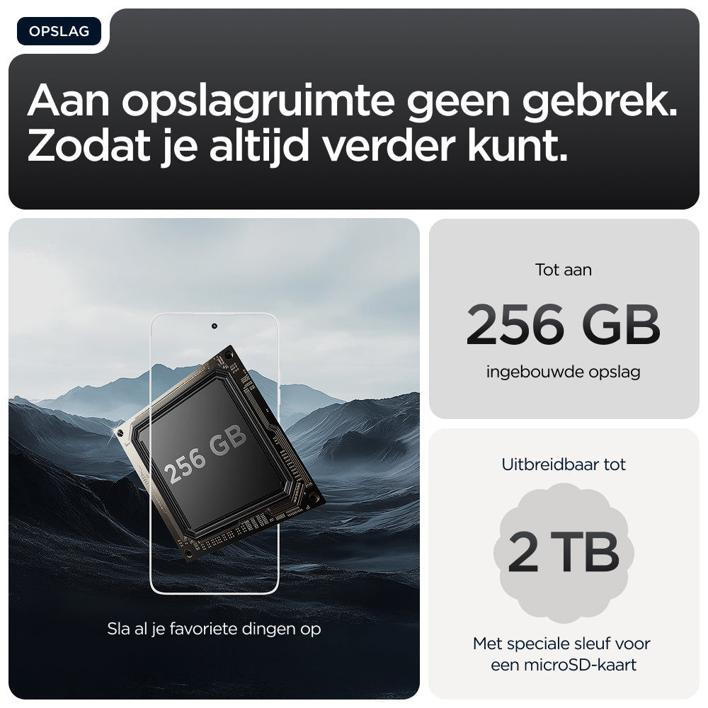 Maak kennis met de moto g56 5G die een prachtig design combineert met praktische stevigheid. Geniet van het zachte gevoel van een eersteklas afwerking met een goede grip plus zorgeloze bescherming onder water, bestendigheid tegen extreme temperaturen en een krasbestendig scherm.(1,2) Entertainment ziet er nog beter uit op een superhelder FHD+-display van 6,72 inch aangevuld door krachtige stereoluidsprekers met Basversterking. Maak prachtige foto's bij elk licht met een Sony LYTIA™-camera van 50 MP met de kracht van moto ai. Krijg urenlang stroom in slechts enkele minuten met razendsnel TurboPower™ opladen.(3,4) Ontketen de kracht van een octa-core processor met de snelheid van 5G.(5) En krijg meer dan genoeg opslagruimte voor foto's, films, nummers en apps. De nieuwe moto g56 5G. Prachtig en robuust.
