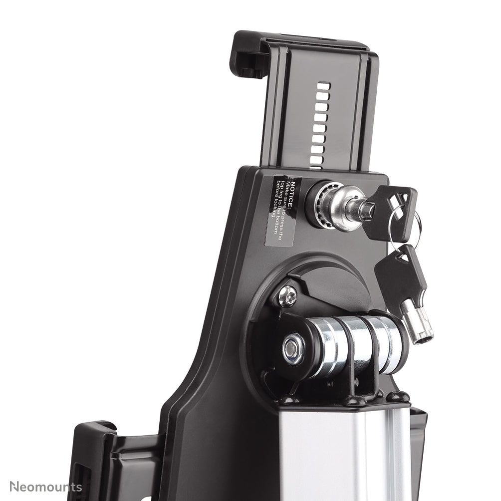 De Neomounts vergrendelbare tablet steun, model TABLET-D150SILVER, is geschikt voor de meeste 7.9"-10.5" tablet. De tablet steun is ontworpen voor plaatsing op het bureau en gemakkelijk te verstellen waardoor alle denkbare standen van de tablet mogelijk zijn.